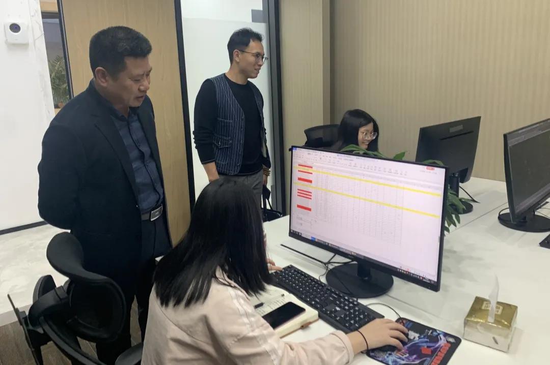 在實(shí)習(xí)生代表粟夢同學(xué)熟悉的指引下,皮建輝博士、柳井老師先后參觀了我司資料部、設(shè)計(jì)部、合約部,親切的看望了在各部門培訓(xùn)實(shí)習(xí)的同學(xué)們;